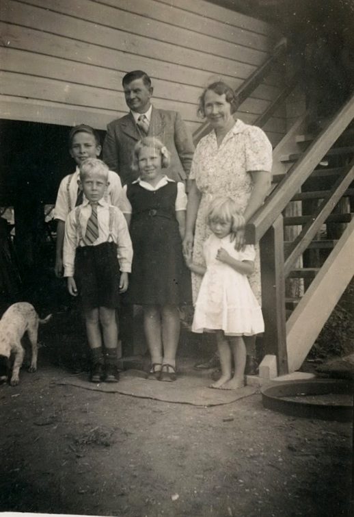 It shows my sister as a shy little waif, apt to hide behind her mother’s apron. We had just moved into a very fine house our parents had built for us. My guestimate is that my younger sister was about four years old.