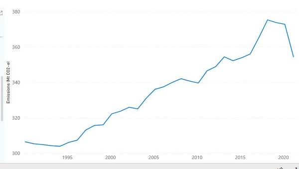 However, if you go to the graphs in the National Greenhouse Gas Inventory Quarterly Update: June 2021 you can play with the interactive graph showing the various sectors individually or together in any combination. This is what emissions look like without electricity and LULUCF (basically land clearing and tree growth):