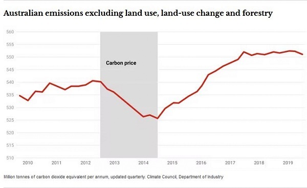 In fact the big reductions have come firstly as a result of Queensland vegetation management legislation, which had a marked effect on Queensland cattle graziers’ ability to clear regrowth from 2007, and secondly policies to promote and subsidise renewable energy. Neither has anything to do a carbon price/tax, so I remain sceptical about the efficacy of generalised carbon tax.