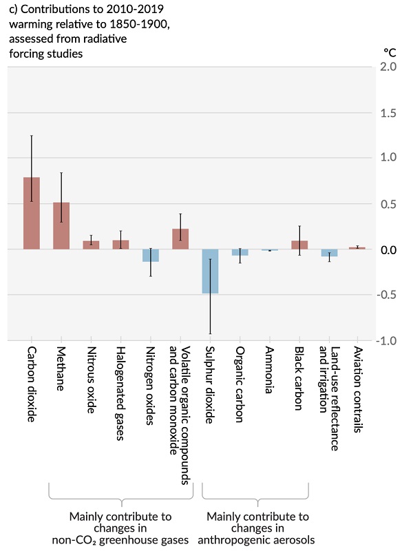 The IPCC gives this graph to show the effect of methane on the climate since preindustrial times: