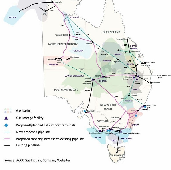The basic problem is that gas resources in the southeast of the continent are running down. New coal seam gas in Queensland has to go the long way, through the gas hubs of Wallumbilla near Roma and then Moomba in northern SA to get to Sydney. New large potential gas sources are further north in Queensland, and especially towards central Australia and the Beetaloo Basin 500km from Darwin.
