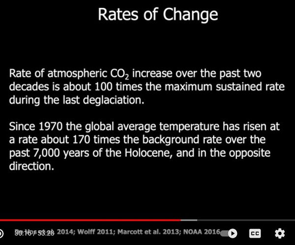 In Earth system terms we are slamming the ecology into a wall. On rates of change he says this: