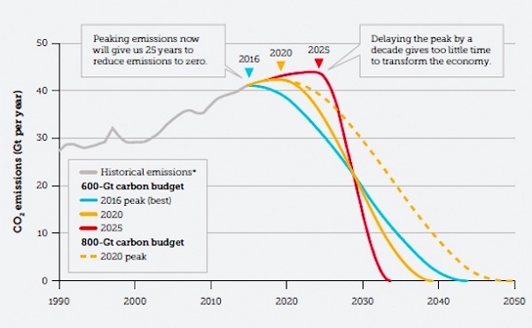 Rectification requires similar rapid and urgent action. Delay is not an option. Steffen shows us a graph from Christiana Figueres 2017 article (with some impressive scientific firepower as co-authors) Three years to safeguard our climate: