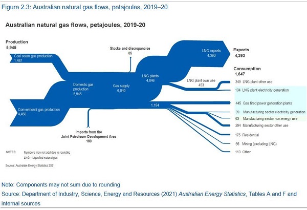 For further context, here are some selected graphs from the official Australian Energy Update 2021, which cuts and chops the energy statistics every which way. First, the Australian natural gas flow for 2019-20 in petajoules: