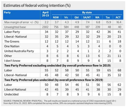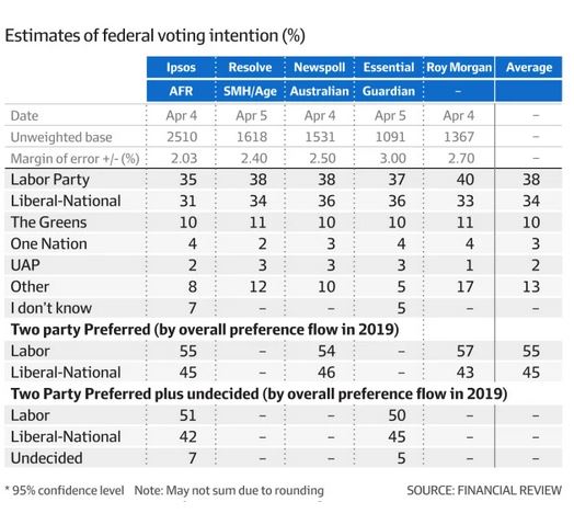 The AFR has an article What polls tell us about the race.
