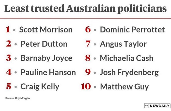 - The New Daily reports New research reveals Australians’ distrust of Scott Morrison is turning them off government.