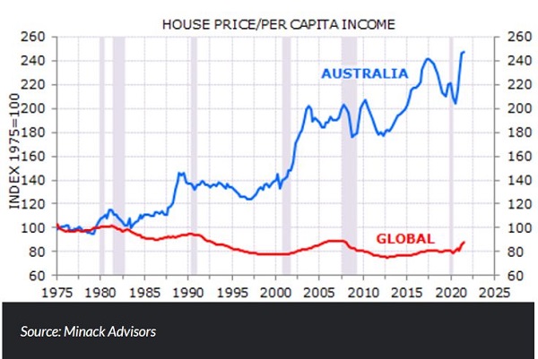For example, when we lived in Melbourne we bought a house to live in for about twice my annual salary as a senior engineer. (We also bought it to function as a rental property when we moved back to the bush.) Years later we sold it for about six times what a senior engineer was earning at the time. (Compound rate of return averaged about 10% for the price increase with rental income on top of this.) My take is that the house had gone from something a senior engineer could afford to something a senior engineer probably could not afford.