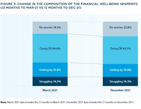 Last Month Roy Morgan published a piece that found unemployment and underemployment was far higher than the ABS figures showed, affecting 16.2% of the workforce. Their most recent Financial Wellness Survey found small improvements to December 2021, but 14.3% of Australians were struggling, while the 19.8% who were getting by also felt their situation “bad”.