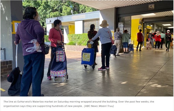 One of the images which should disturb the brain cells of all politicians is this queue outside the OzHarvest Waterloo market in Sydney: