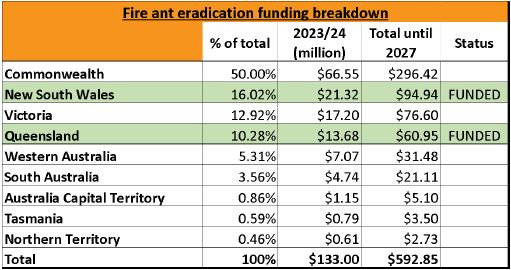 Yesterday the Commonwealth came good in providing full support to the four-year first phase of 10-year eradication plan – $268 million federal fire ant funding announcement welcomed.