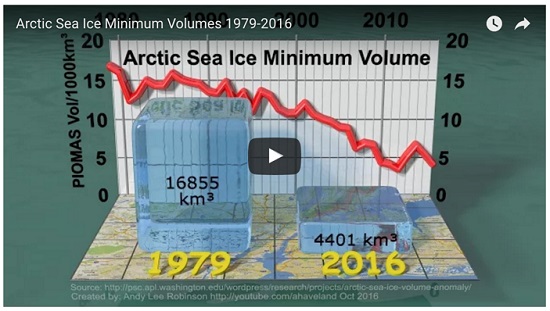 … annual mean ice thickness has decreased from 3.59 meters [11.8 feet] in 1975 to 1.25 m [4.1 feet] in 2012, a 65% reduction. This is nearly double the 36% decline reported by an earlier study….