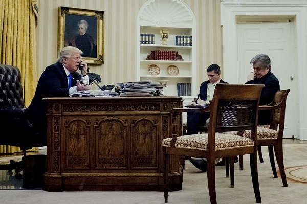 What is scary is how Trump and his administration handled the whole thing. Via Bloomberg, this is the scene in his office: