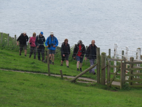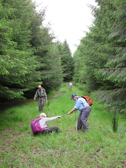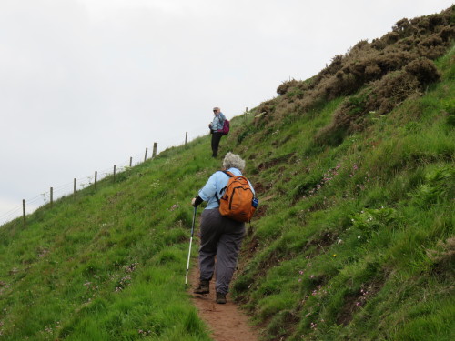 Pretty soon we came to a feature named (for no known reason) ‘Robin Hoods Chair’. ‘You mean we have to go up there?’ – Tricia seems to be saying!