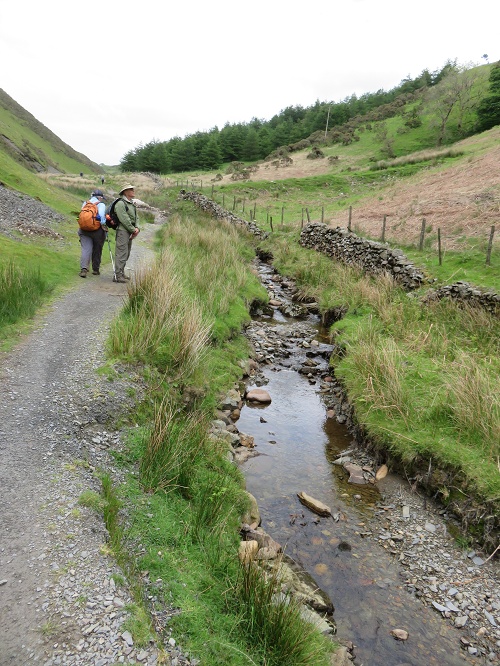 But the scenery was no less spectacular! In the middle of the picture below you can see the valley that we were headed for. At the start of the day, some of us had been keen to take the alternative high route, via the ridge and peaks on the upper left of this photo, particularly over Red Pike, High Stile, High Crag and Hay Stacks as you move along the ridge. As you can see, the clouds were getting low and in fact the rain started shortly before we reached the turn-off to Red Pike. So we decided against the high route. But Laurie was still keen, so later he took a solo side trip up to near Hay Stacks. When he arrived later at Black Sail, he reported that there were lots of people up on the high path – seems like these Lakeland folk don’t let a little cloud and rain put them off!