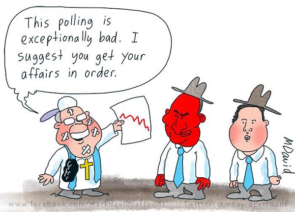 In brief, we had the ALP National Conference, which ScoMo attempted to disrupt by announcing the next Governor General. Then the Mid-Year Economic and Fiscal Outlook 2018‑19 showed the economy producing unexpected riches. However, the media were diverted by NP member and Assistant Finance Minister Andrew Broad’s ‘Sugar Daddy’ scandal, which, according to the Betoota Advocate, his leader Michael McCormack explained was a private family matter and hence none of our business. Meanwhile two opinion polls came out, which were not to ScoMo’s liking. Continue reading Federal election campaigning has started